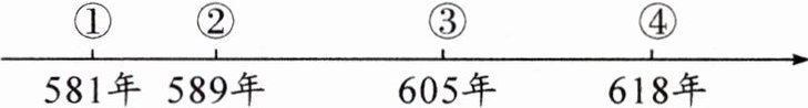 1. 时空观念下图示意我国重大历史事件的时间轴,图中的①②③④代表相关的历史事件,代表隋朝完成统一的序号是 ( )
