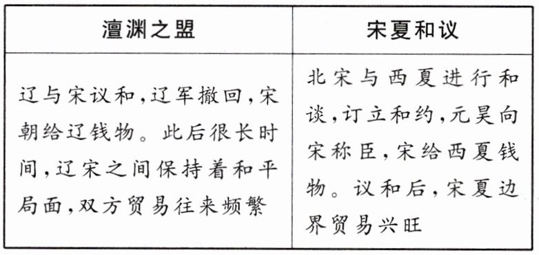 (2)方式:议和。看法:一方面带有屈辱性,并加重了百姓的负担;另一方面能带来相对和平,促进经济发展。(意思相近即可)