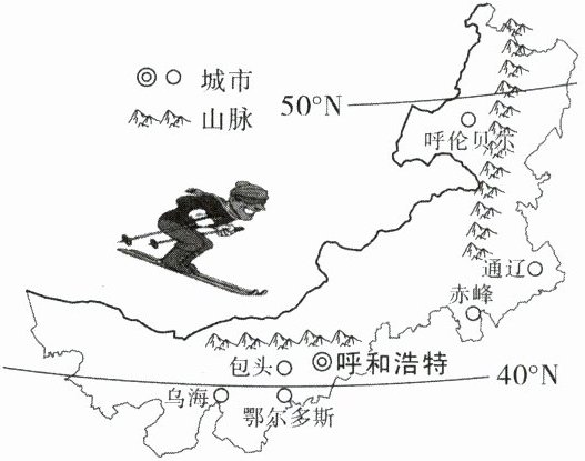 近年来,内蒙古自治区各地群众参与冰雪运动的热情日益高涨。读内蒙古自治区部分城市位置图,完成13~15题。