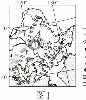 20. 图中阴影区域①②分别是松嫩平原和三江源,关于①②说法正确的是