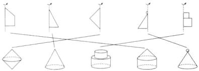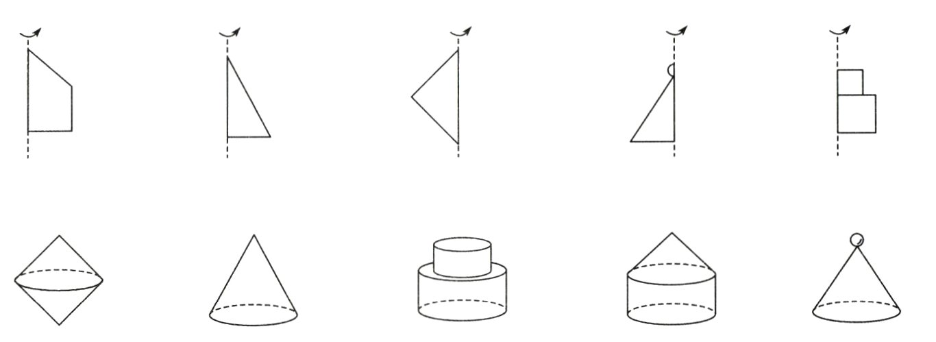1. 把下面平面图形绕虚线旋转一周形成的立体图形与对应的平面图形连起来。(10分)