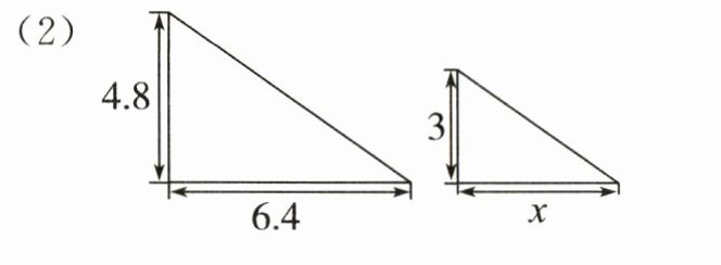(2)$x:6.4 = 3:4.8$ $x = 4$