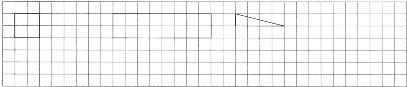 2. 把下面的正方形按2:1的比放大;长方形按1:2的比缩小;三角形按3:1的比放大。画出相对应的图形。(9分)