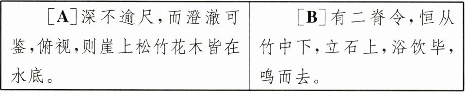 19. 同样是写水,本文画横线的A、B两句中的哪一句与下面的例句在写法上有异曲同工之妙?请用现代汉语翻译你选择的句子并简述理由。(5分)