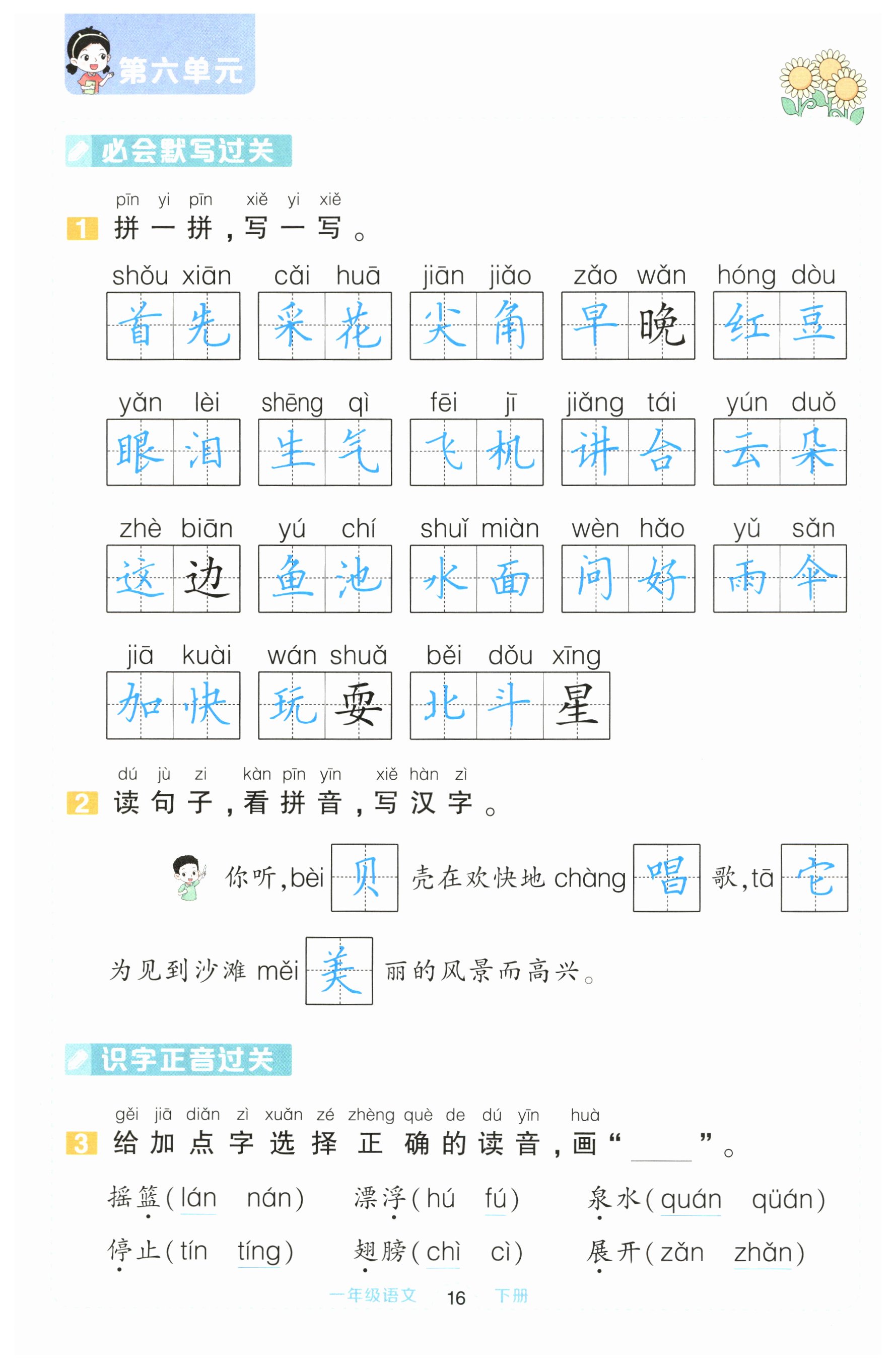 注:目前有些书本章节名称可能整理的还不是很完善,但都是按照顺序排列的,请同学们按照顺序仔细查找。练习册 2025年黄冈状元成才路状元作业本一年级语文下册人教版福建专版 答案主要是用来给同学们做完题方便对答案用的,请勿直接抄袭。