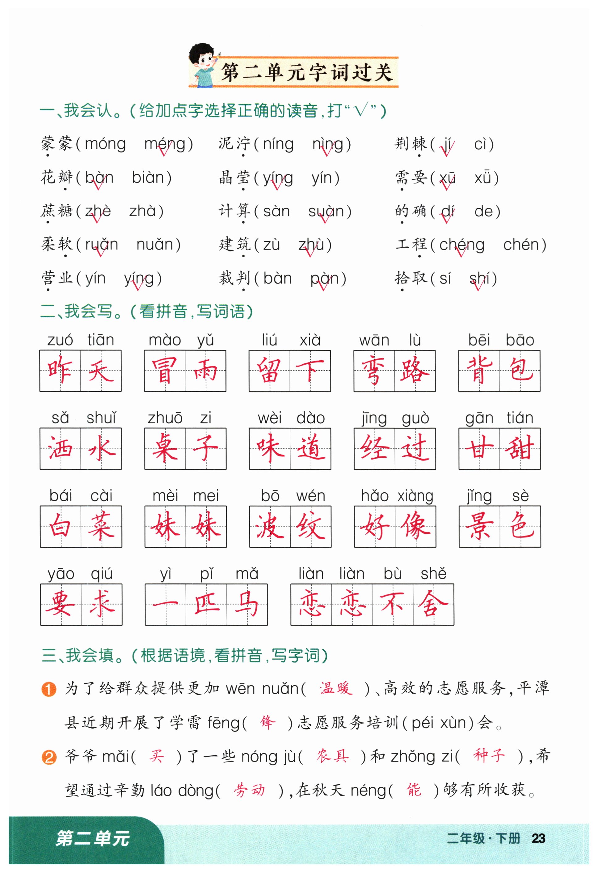 注:目前有些书本章节名称可能整理的还不是很完善,但都是按照顺序排列的,请同学们按照顺序仔细查找。练习册 2025年黄冈状元成才路状元作业本二年级语文下册人教版福建专版 答案主要是用来给同学们做完题方便对答案用的,请勿直接抄袭。