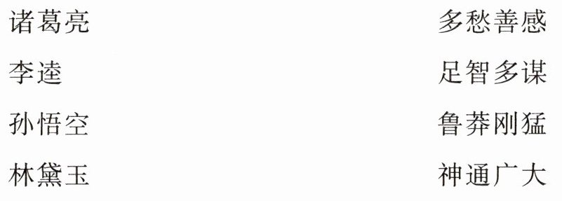 三、下列中国四大古典名著中的人物各有什么特点?连一连。