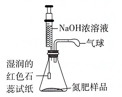 [实验操作] 如图所示,向盛有氮肥样品的锥形瓶中注入NaOH浓溶液。