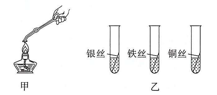 ②如图乙,三支试管里的液体均为稀盐酸,铁丝表面有气泡冒出,银丝和铜丝无明显变化。由此可得出有关金属活动性的结论是______________________________。