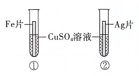 B. 实验②中发生的反应是2Ag+CuSO₄$\stackrel{}{=\!=\!=}$Ag₂SO₄+Cu