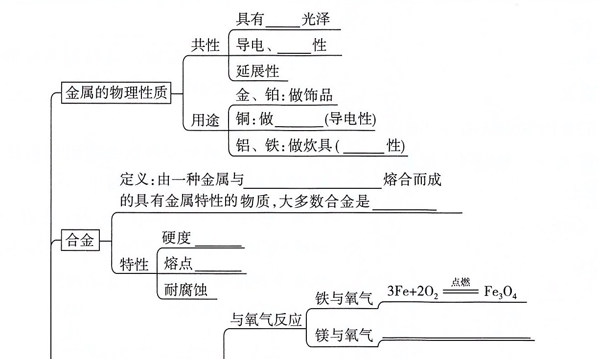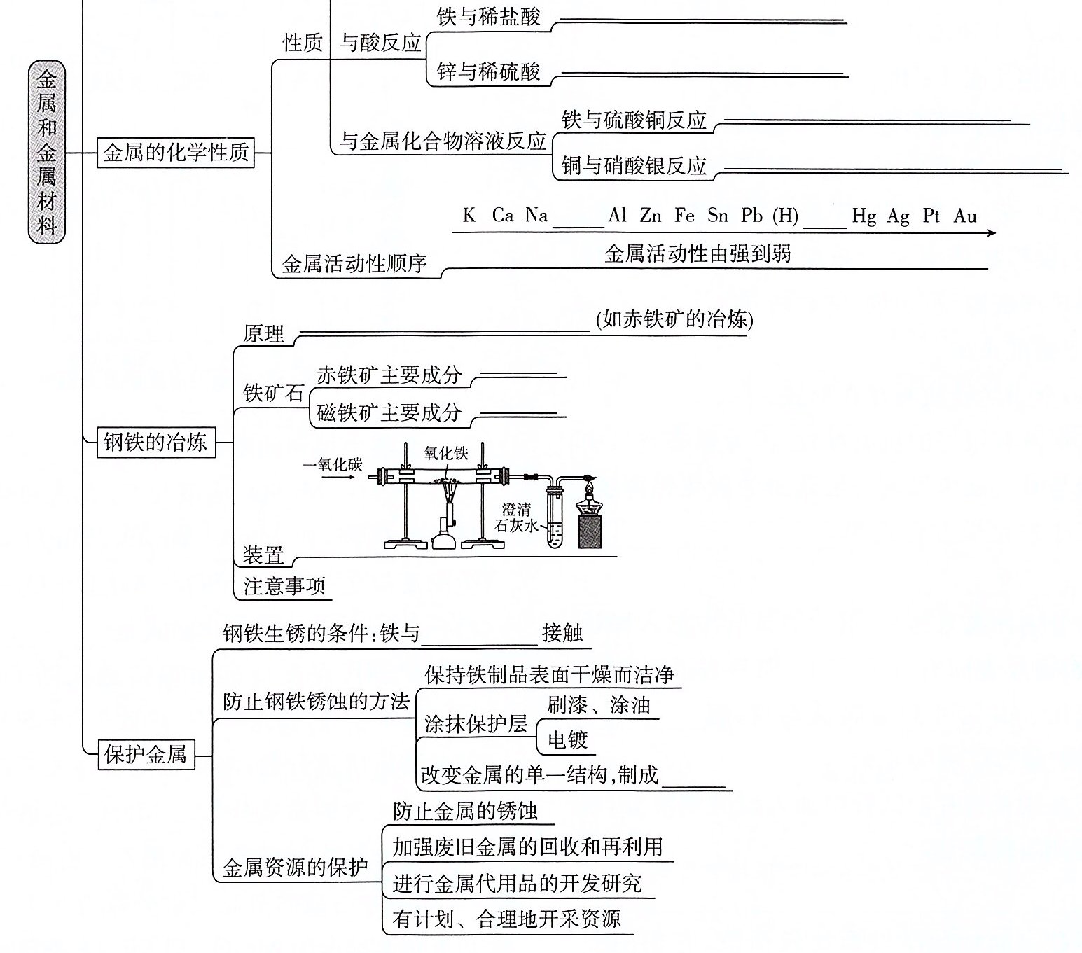 12.(2024贵州)贵州蕴藏着丰富的铝、锰、锌、铁、铜等矿产资源。合理开采、充分利用这些矿产资源,可实现“富矿精开”。