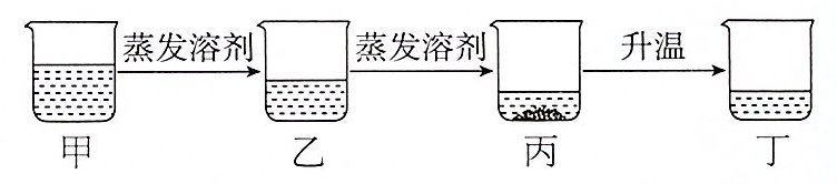 3. 如图为小李同学在实验室中蒸发不饱和氯化钾溶液的过程,图中各烧杯中溶液的溶质质量分数最大的是 ( )