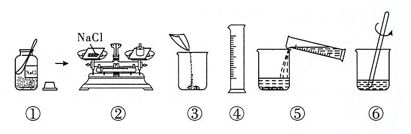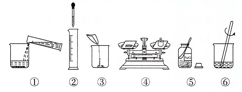 6. 在实验操作考试中,小明的考试题目是配制50 g溶质质量分数为6%的NaCl溶液(已知ρ水 = 1 g/mL),请回答下列问题: