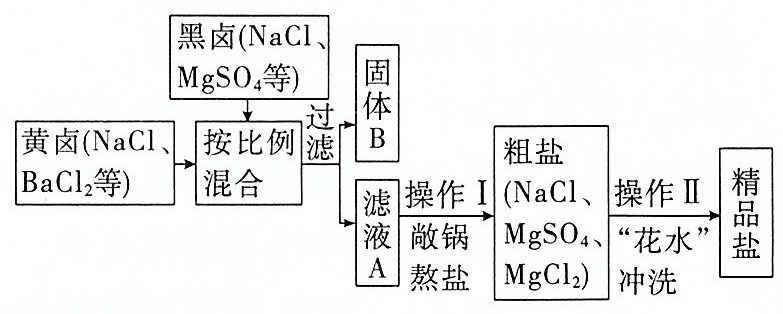 B. 操作Ⅰ敞锅熬盐的原理是蒸发结晶