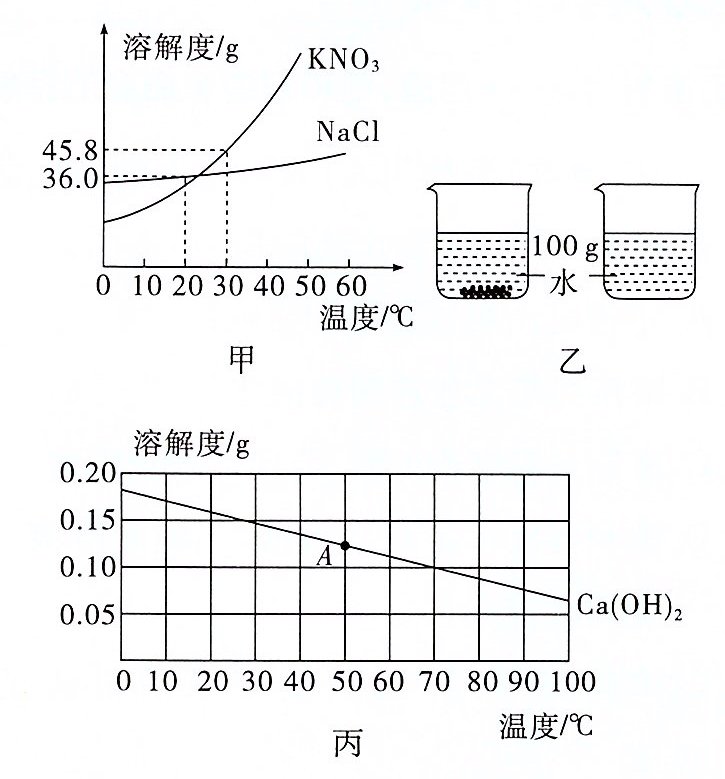 (1)KNO₃与NaCl在水中的溶解度曲线如图甲所示,20℃时,NaCl的溶解度为______g。