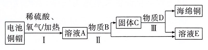 7. 利用废旧电池铜帽(含Cu、Zn)制取海绵铜(Cu),并得到硫酸锌溶液的主要流程如图(反应条件已略去):
