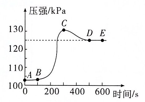 D. D、E两点处的气体压强比B点大是因为容器内产生了氢气