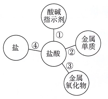 2. 归纳是学习化学的重要方法,小红在复习盐酸的性质时,归纳出盐酸的4条化学性质,如图所示,连线表示相互反应。