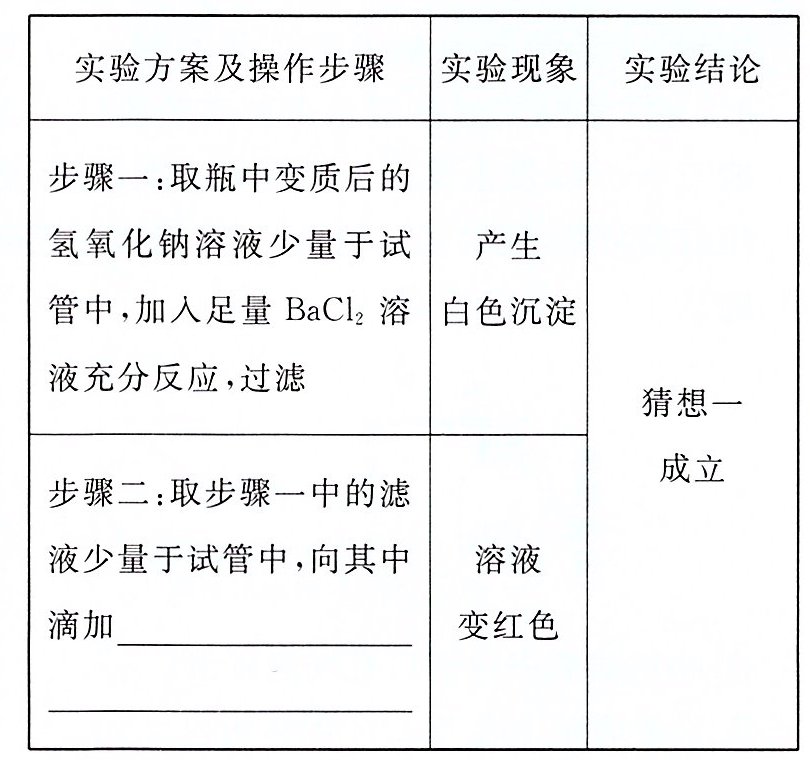 [猜想假设]猜想一:NaOH、Na₂CO₃;猜想二:Na₂CO₃。