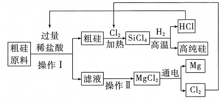 7.(2023通辽)如图是用粗硅原料(含氧化镁杂质,不考虑其他杂质与酸反应)制备高纯硅和金属镁的流程。
