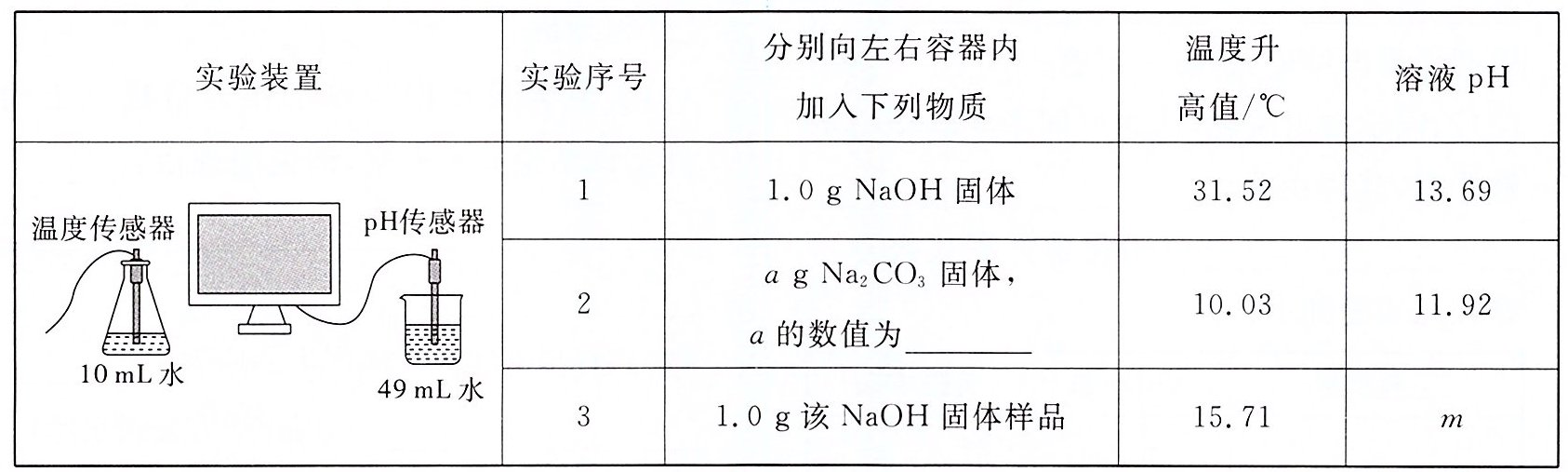 [实验结论] 小组同学分析温度升高值数据,确定该NaOH固体变质程度是__________,推测m的取值范围是____________________。