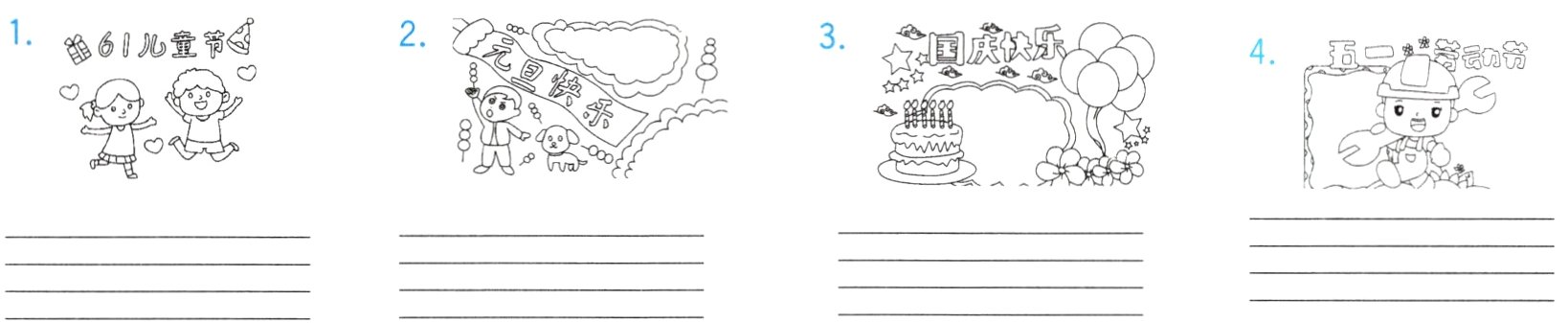 1. Children’s Day 2. New Year’s Day 3. China’s National Day 4. Labour Day