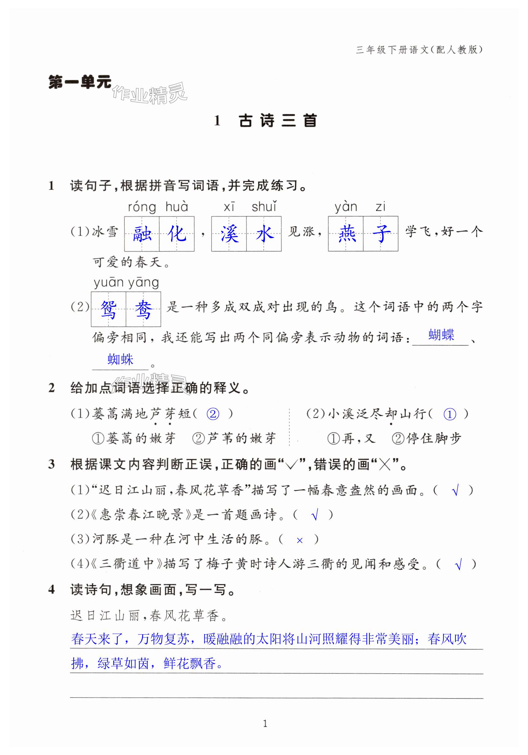 注:目前有些书本章节名称可能整理的还不是很完善,但都是按照顺序排列的,请同学们按照顺序仔细查找。练习册 2025年作业本江西教育出版社三年级语文下册人教版 答案主要是用来给同学们做完题方便对答案用的,请勿直接抄袭。
