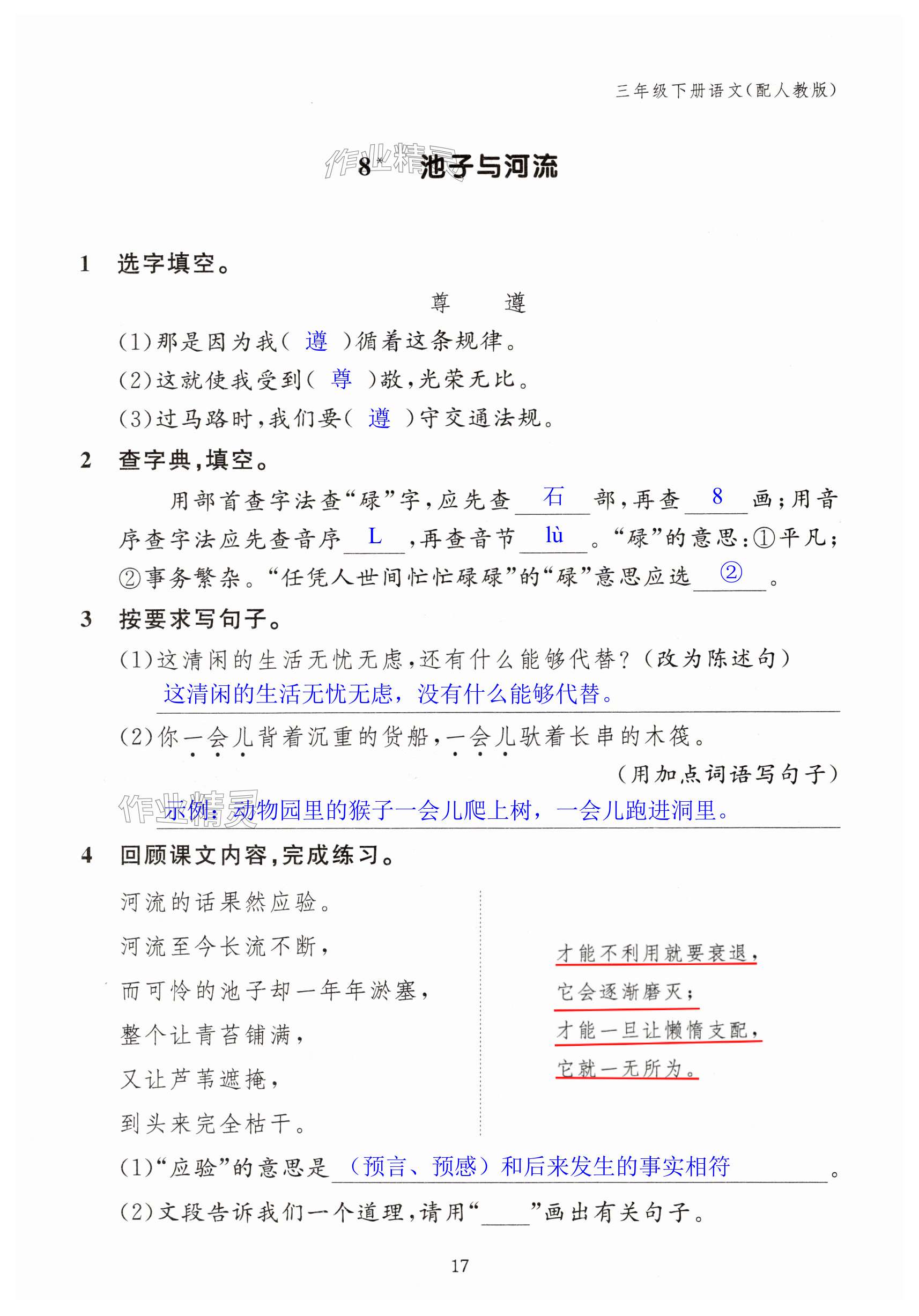 注:目前有些书本章节名称可能整理的还不是很完善,但都是按照顺序排列的,请同学们按照顺序仔细查找。练习册 2025年作业本江西教育出版社三年级语文下册人教版 答案主要是用来给同学们做完题方便对答案用的,请勿直接抄袭。