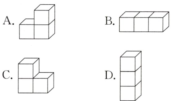 一个几何体,从前面看是3个正方形,从左面看是1个正方形,从上面看是3个正方形,这个几何体是( B )。