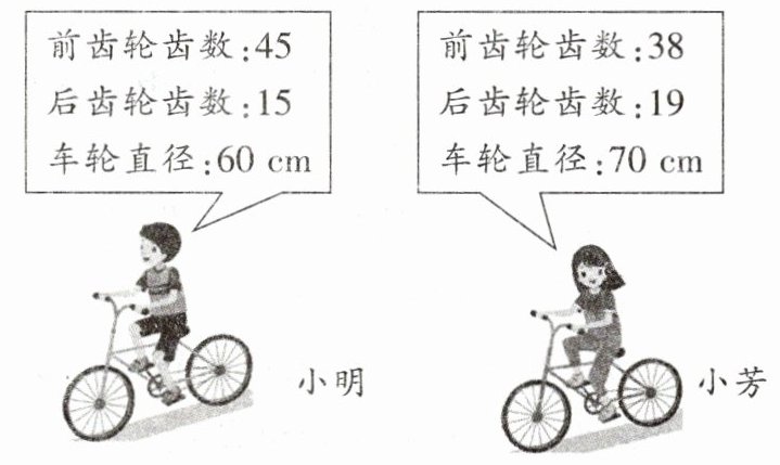 小明:前齿轮齿数:45,后齿轮齿数:15,车轮直径:60 cm