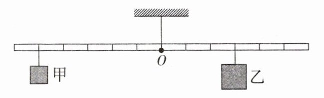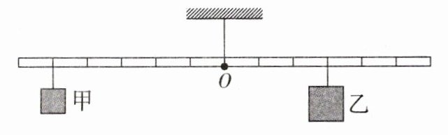 12. 如下图所示,竹竿左右两边分别拴着物体甲和物体乙,竹竿保持平衡。已知物体甲的质量是$150$g,则物体乙的质量是( )g。