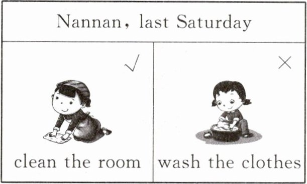 一、南南和同学们在谈论上周做过的事情。看图,仿照示例写对话。