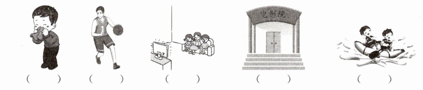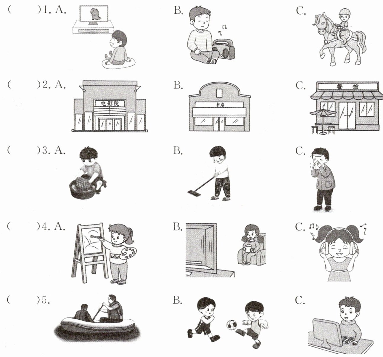 二、下课了,同学们聊起各自的课余生活。听对话,用数字1−5给下列图片排序。