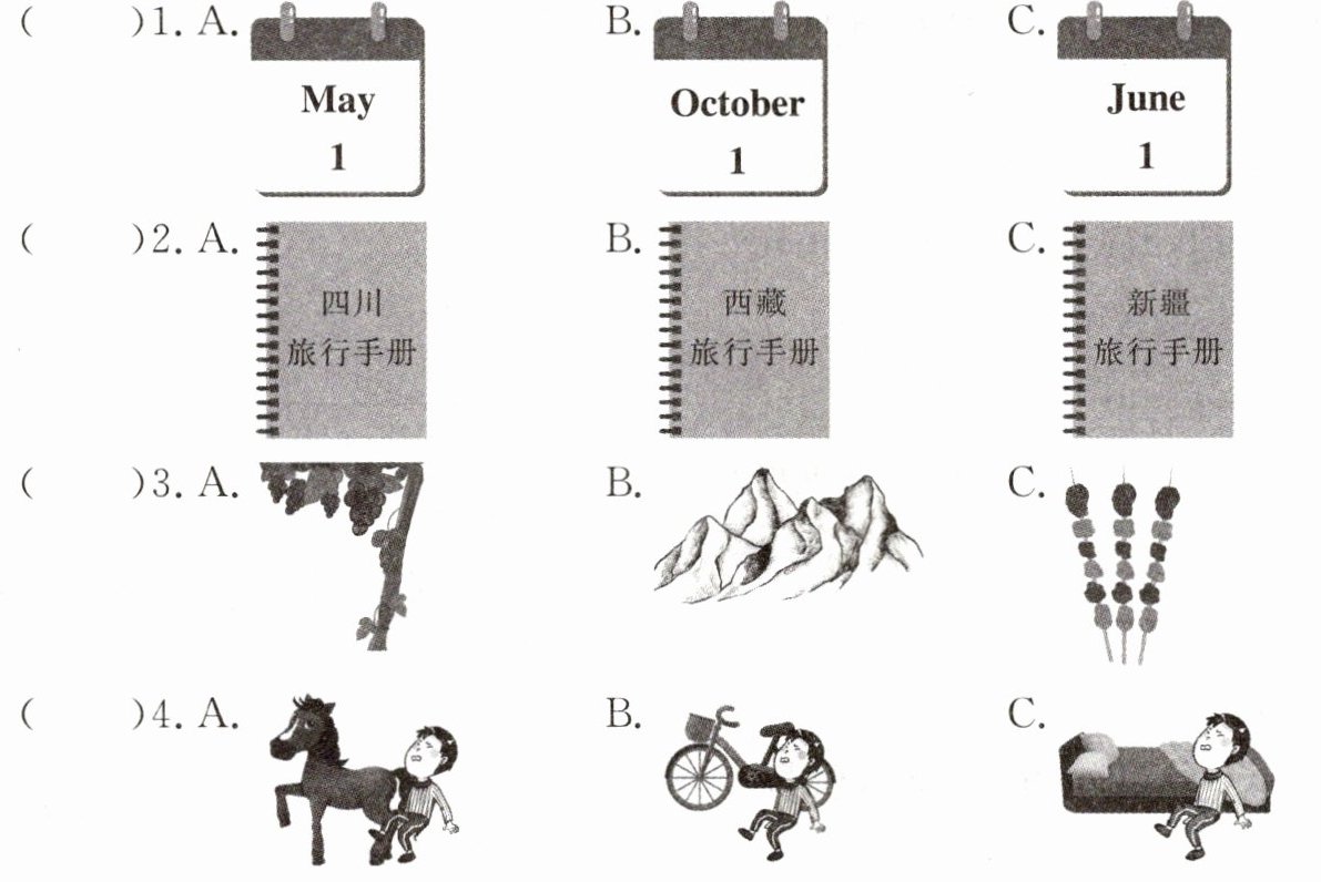 一、Leo和朋友打电话分享了自己最近的旅行经历。听对话,选择与你所听到的内容相符的图片。