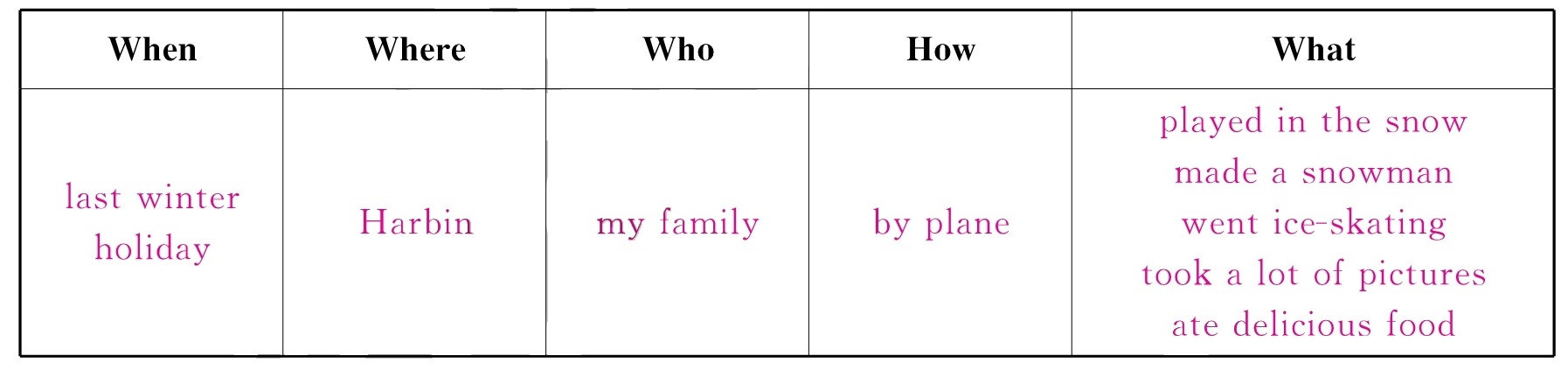 假期你去过什么地方?做了什么事呢?请先完成表格,再根据下面的提示问题写一写你的假期经历吧!