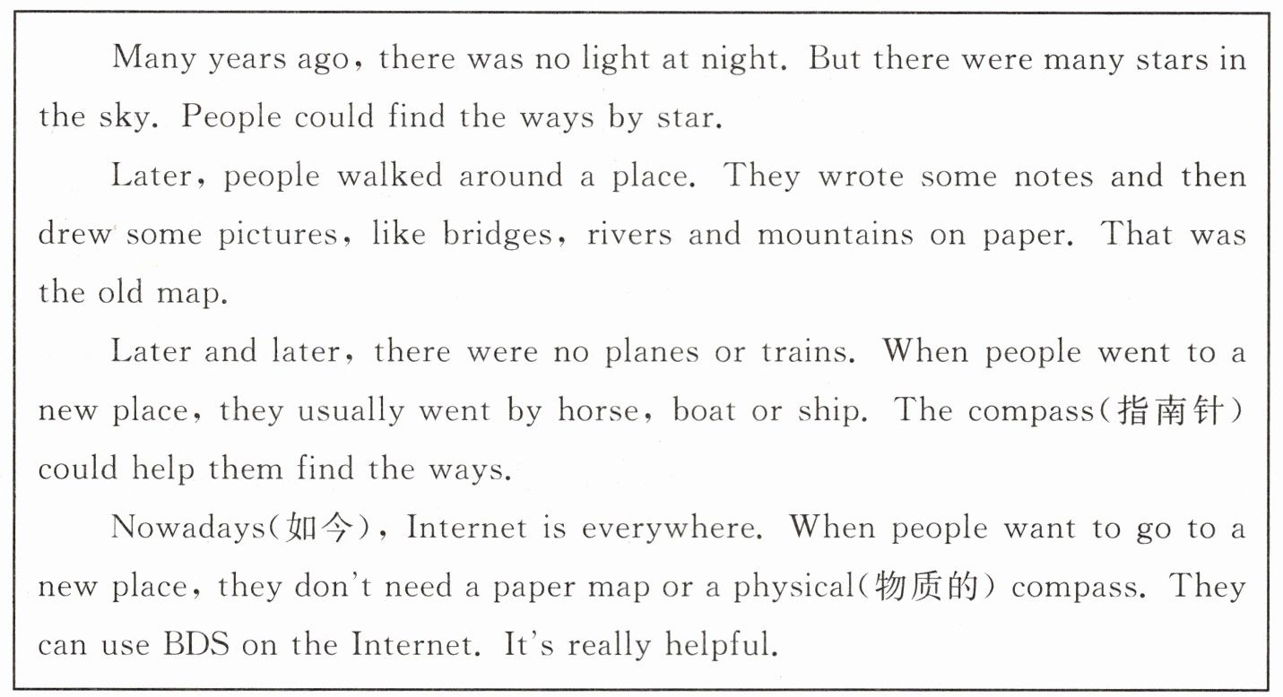 When we want to go to a new place,we can use BDS now. But many years ago,we didn't have BDS. How did people find the ways in the past?