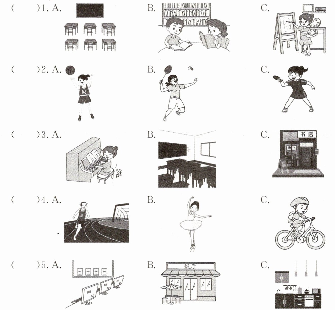 ( C )5. A. ate B. ago C. art room