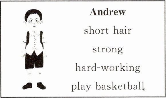 三、Emily 碰到了好朋友 Andrew,她向爷爷介绍了 Andrew。请仿照示例完成介绍。