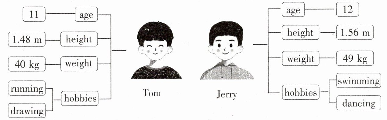 假如你是Tom,请根据下面的思维导图,写一篇短文将你和好友Jerry进行比较。