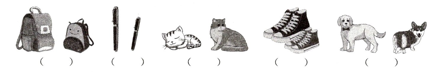 二、回来后他们玩了“比一比”游戏。听句子,用数字1−5给下列图片排序。
