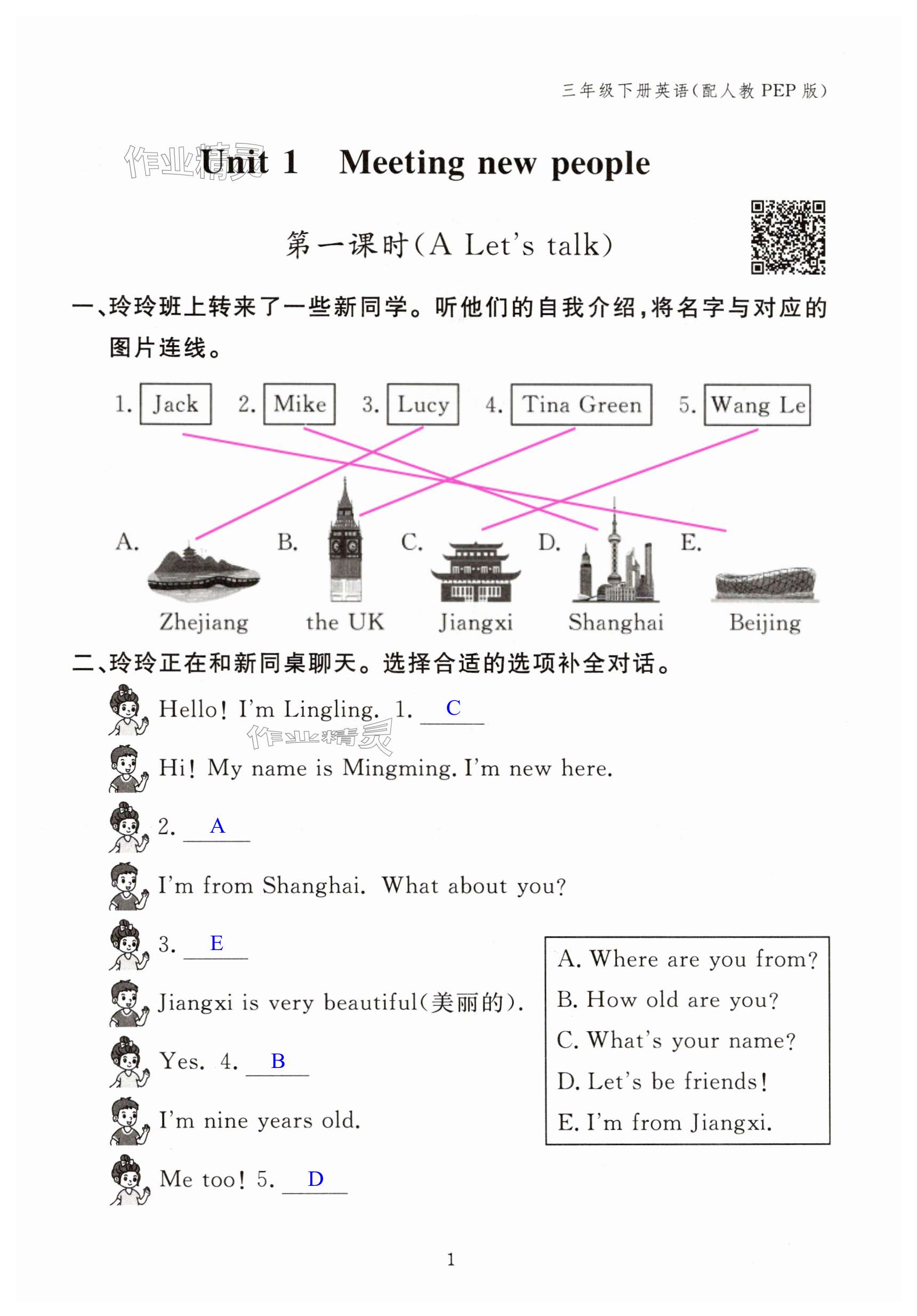 注:目前有些书本章节名称可能整理的还不是很完善,但都是按照顺序排列的,请同学们按照顺序仔细查找。练习册2025年作业本江西教育出版社三年级英语下册人教版答案主要是用来给同学们做完题方便对答案用的,请勿直接抄袭。