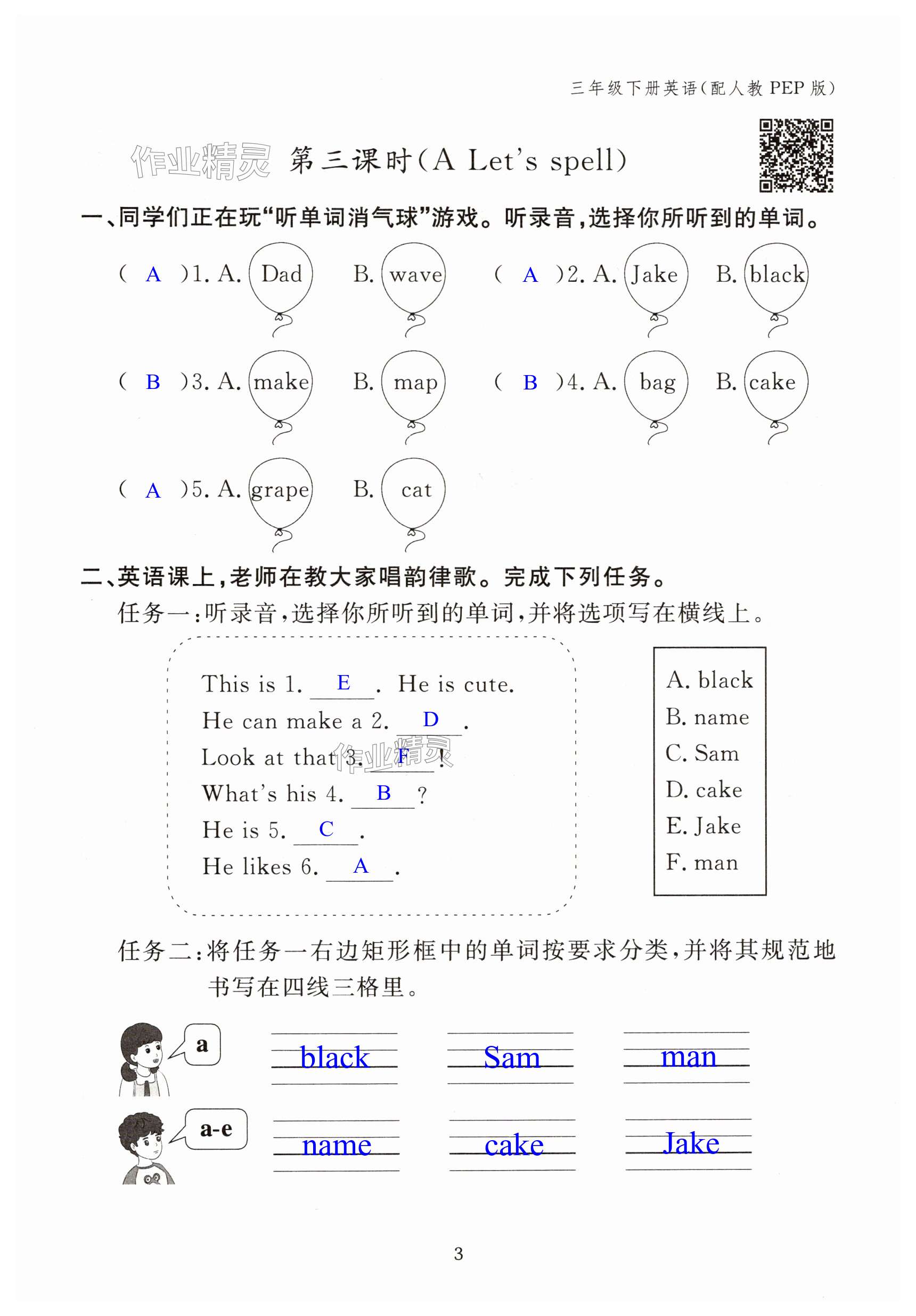 注:目前有些书本章节名称可能整理的还不是很完善,但都是按照顺序排列的,请同学们按照顺序仔细查找。练习册 2025年作业本江西教育出版社三年级英语下册人教版 答案主要是用来给同学们做完题方便对答案用的,请勿直接抄袭。