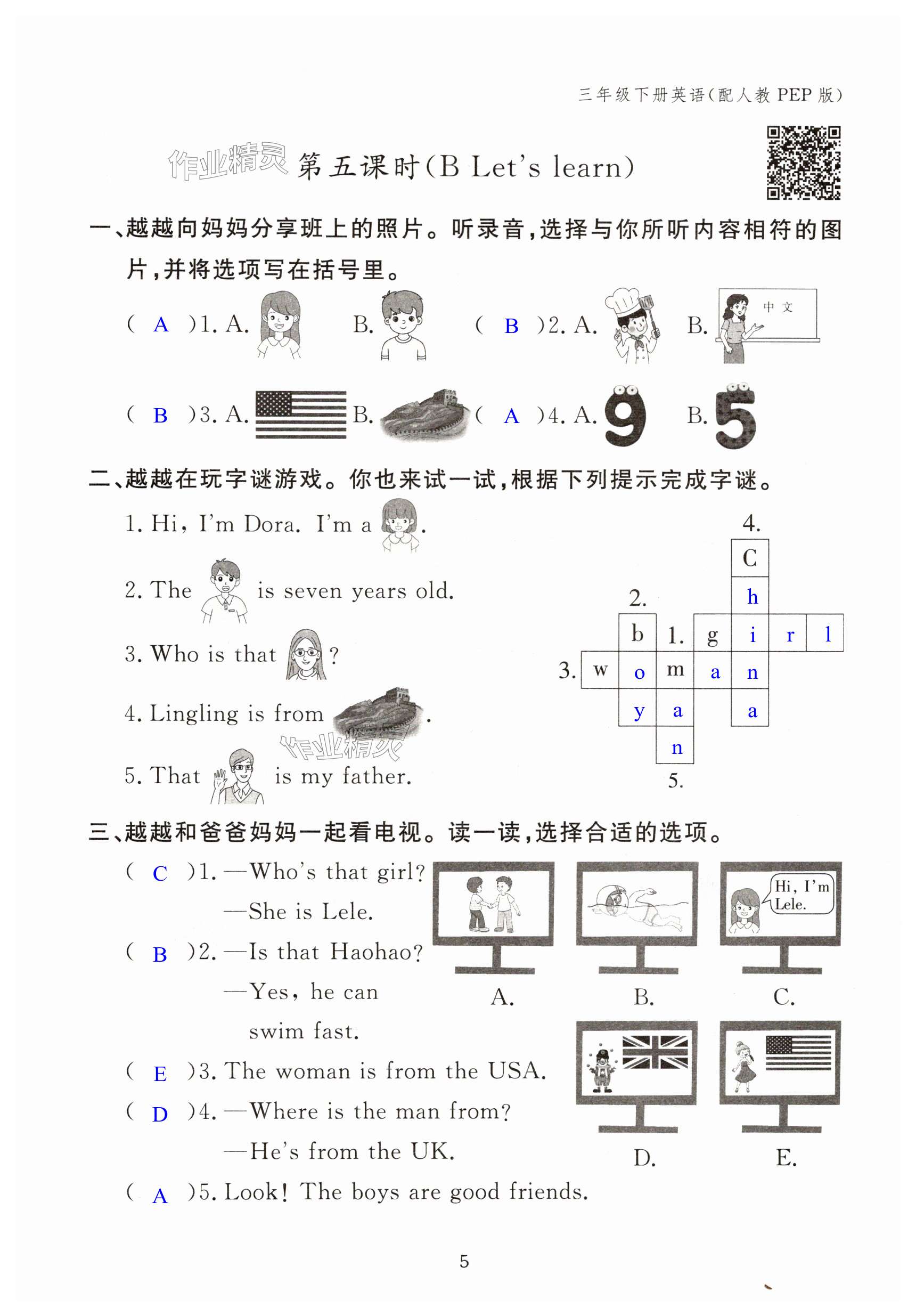注:目前有些书本章节名称可能整理的还不是很完善,但都是按照顺序排列的,请同学们按照顺序仔细查找。练习册 2025年作业本江西教育出版社三年级英语下册人教版 答案主要是用来给同学们做完题方便对答案用的,请勿直接抄袭。