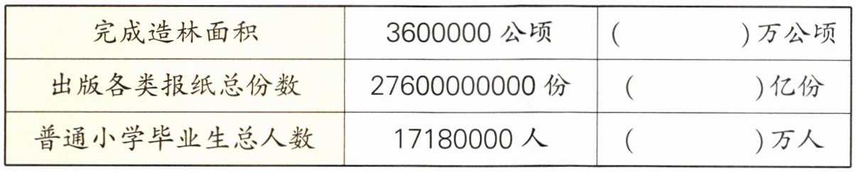 4. 下表中是我国2021年部分项目的统计数据,把表中的数改写成用“万”或“亿”作单位的数。
