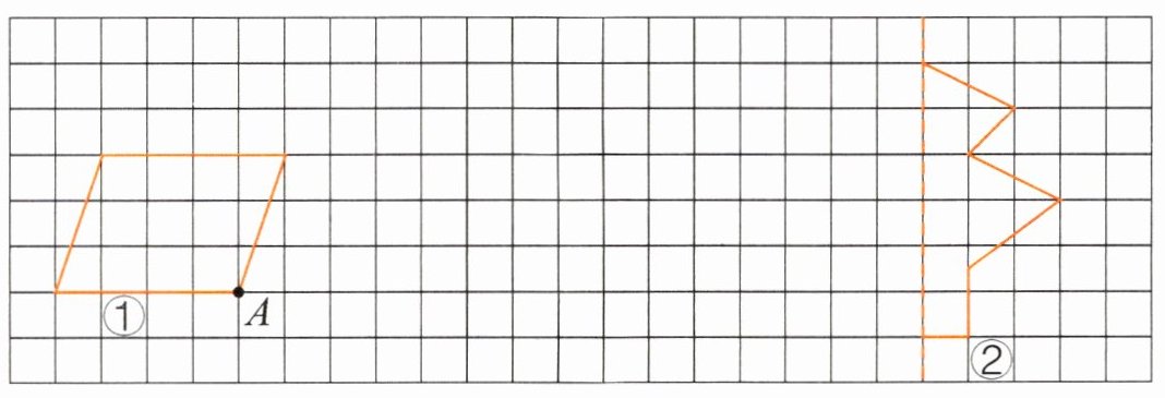 (1)将图①绕点A顺时针旋转90°,再将旋转后的图形向右平移6格。