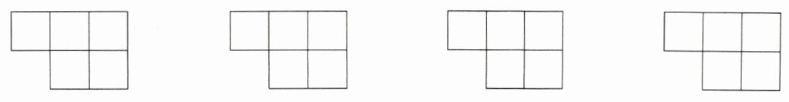 5.下面的图形都是由相同的小正方形组成的,请分别在各图形上再添加一个同样大小的小正方形,使它们成为轴对称图形。