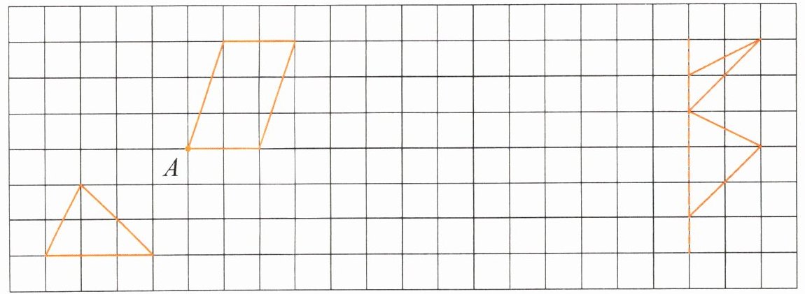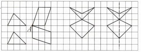 (3)把最右边的图形补全,使它成为轴对称图形,并把整个图形向左平移6格。