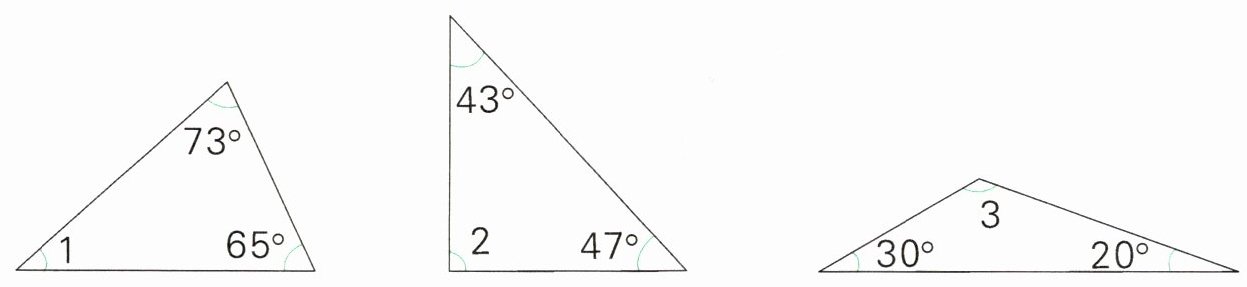 (2)一个三角形的三个角的度数都相等,这个三角形中每个角的度数都是( ________ )。