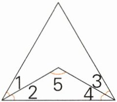 $\angle1=\angle2=\angle3=\angle4 = 180^{\circ}\div3\div2 = 30^{\circ}$ $\angle5 = 180^{\circ}-\angle2-\angle4 = 180^{\circ}-30^{\circ}-30^{\circ}=120^{\circ}$ 这是一个钝角三角形。
