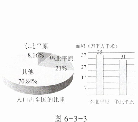 (3)俗话说“龙江熟,天下足”,五常大米成为哈大高铁餐车上的首选。东北平原与华北平原都是我国的粮食主产区,据图6-3-2与图6-3-3分析,为什么东北三省能够成为我国最大的商品粮基地?
